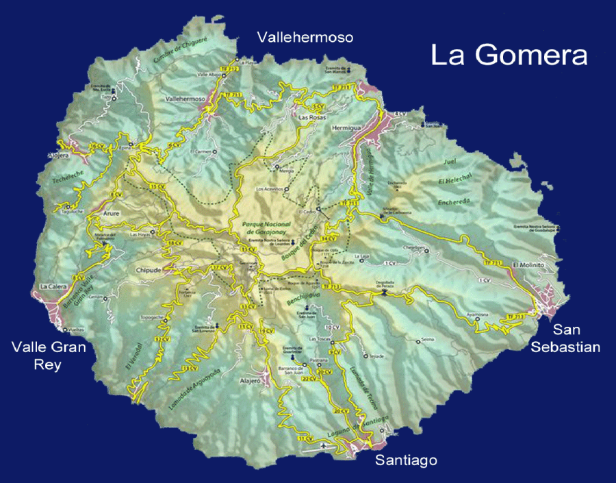 Auf La Gomera gibt etliche Landschaftszonen, welche die Insel zu einem abwechslungsreichen Wandergebiet machen. 650 Kilometer an Wanderwegen halten für jeden Geschmack etwas parat: Es ist ein Wegenetz an verschlungenen und mysteriösen Pfaden durch steile Schluchten wie bei Alajero, an sprudelnden Quellen mit heilendem Wasser wie bei Chorros de Epina vorbei und führt durch Täler, die über und über mit grünen Palmen bewachsen sind wie das Valle Gran Rey im Westen der Insel.